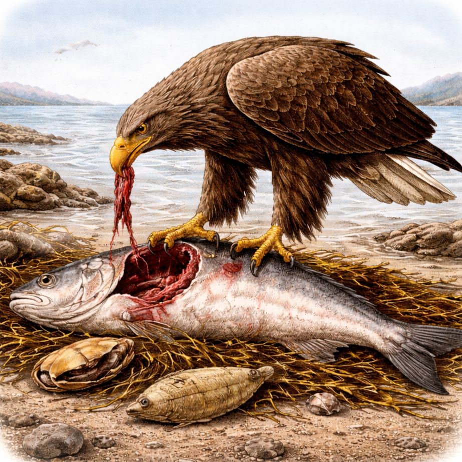 See how White-tailed Eagles interact with wildlife and influence wetland food webs in Wales.